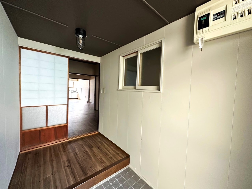玄関も大きく設備を変えたりはしていませんが、壁紙や床、天井の色が変わるだけで明るい雰囲気にすることができます。