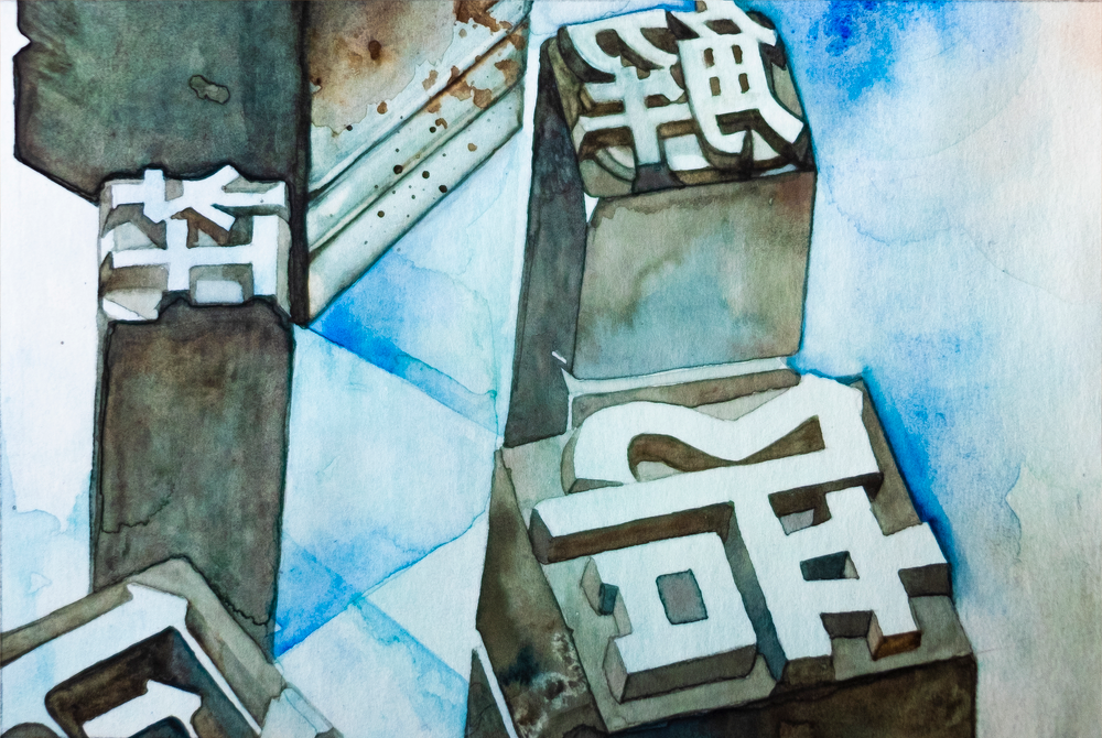 ⼩さなコップくらいのガラスの器の中に、その「活字」が⼊っていたのです。