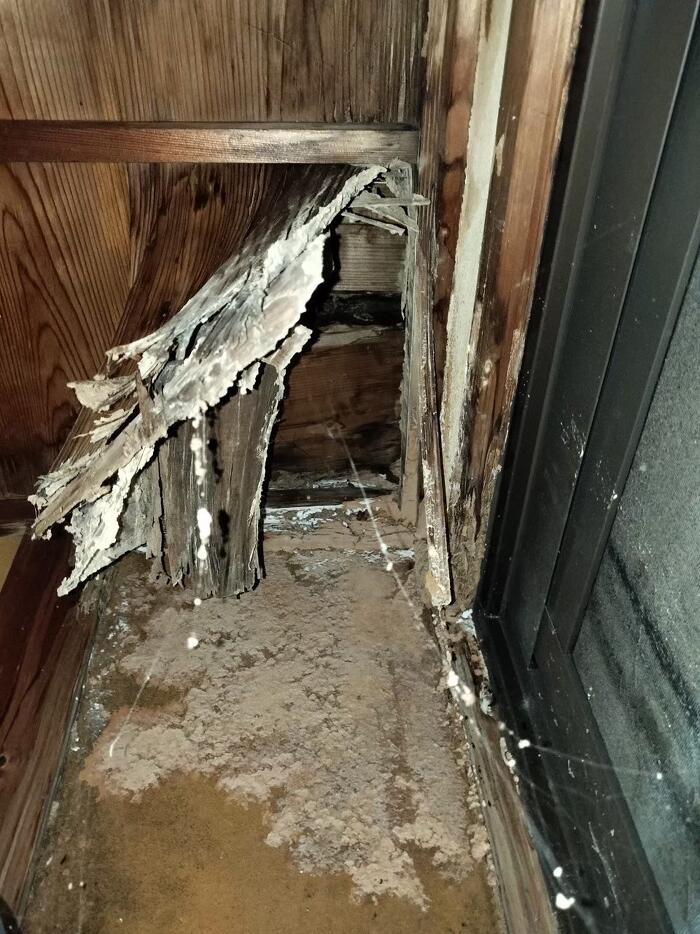 空き家となりしばらくしてから、写真のように玄関の天井が雨漏りによって崩れてしまったようです。